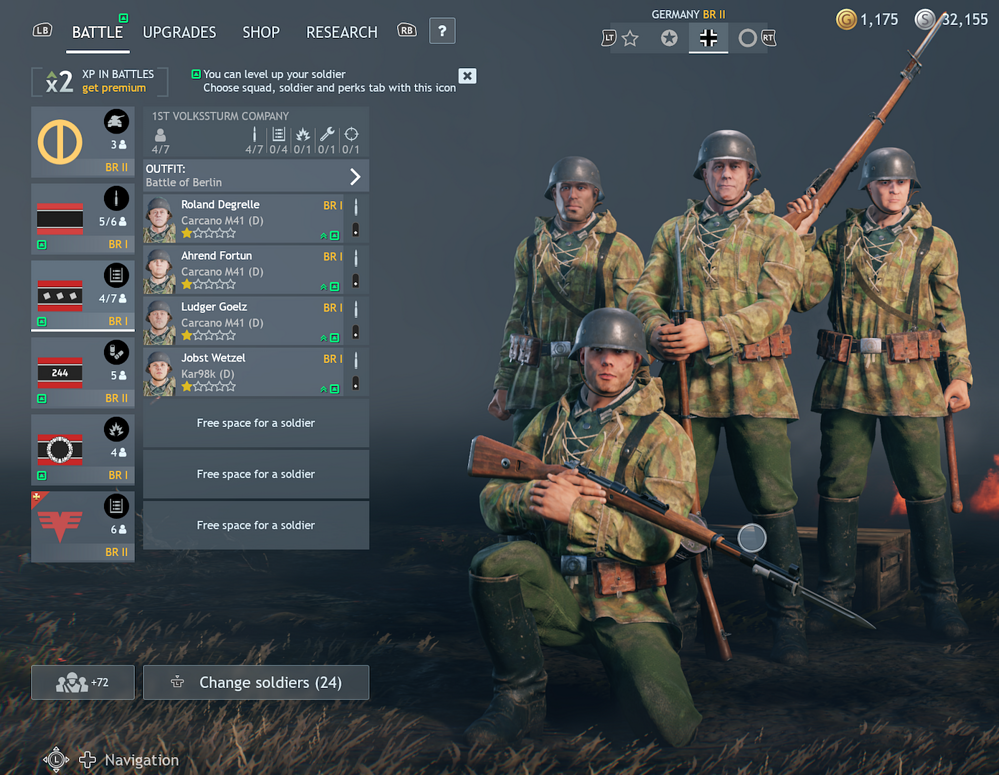 Only the gurilla squad can wear a flat cap and these 4 unique volkstorm armband torsos (including the one he’s wearing).