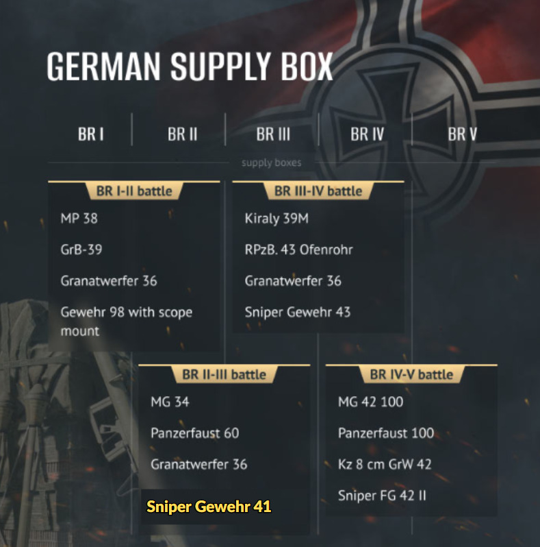 With Paratroopers being such a unique unit (requiring purchase, or much time invested as they are not in tech tree) I think their crate loadouts could include old BP/Premium weapons to make thier kit “feel” more nation specific (not saying historically accurate). also a bit of advertising for when the weapons come around again in the store