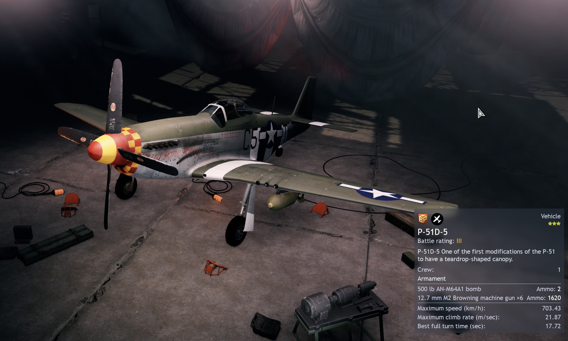 It also carries much more powerful payload for CAS role. The only distinct advantage Ki-61-II Kai is the turn time. However this doesnt explain why P-51D is BR III and Ki-61-II is BR IV (which is basically BR V with current Japan matchmaker)