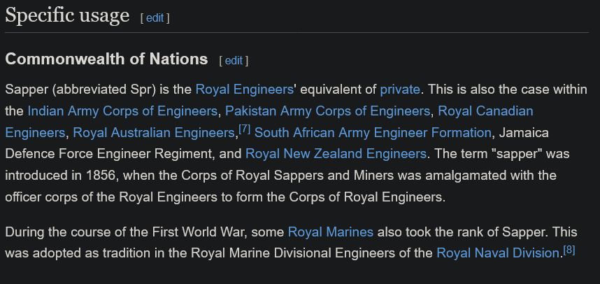Ah was unaware of them being completely synonymous. Knew they were basically the same thing, but thought “sapper” was a more specific term for a certain kind