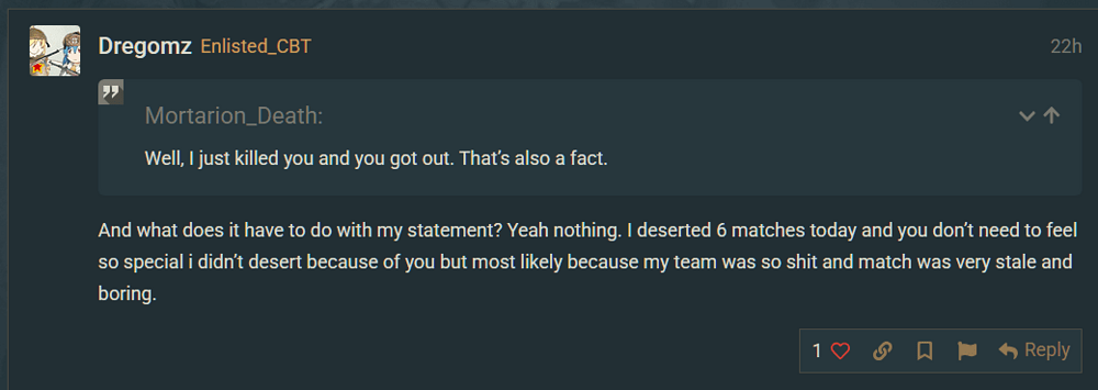 I am not a soviet main and i don’t main any country so what does it have to do with loyalty? I have no loyalty i am quadruple agent. Today i haven’t really deserted many matches as i saw how hopeless all of them are (with few exceptions)