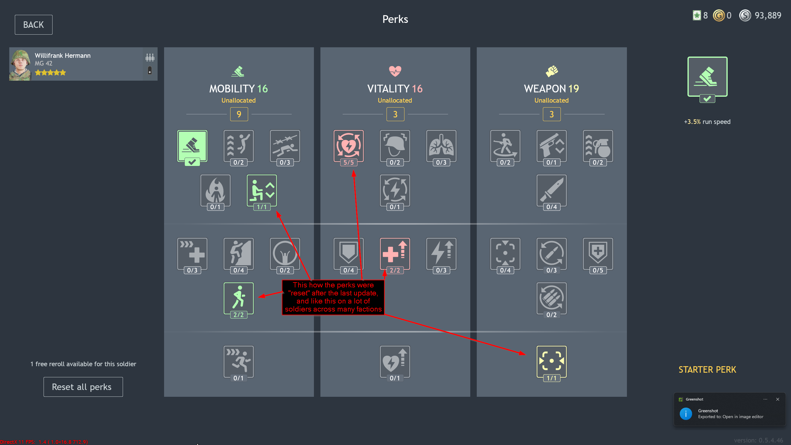 Ok here the thing : i’ve spent months grinding this game and i don’t use a premium account which means i have to grind really hard to earn Silver Coins. On top of that i have to re-configure the perks because they are not in the right place after whatever update was messing with my soldiers perks with the wrong perks. I had to spend dozen of thousands of SC for re-assigning the perks at the right place, all those SC are wasted just on the basis that the update or whatever it was was messing with my perks. And that fact alone strongly hinder my ability to play the game, because i want to enjoy it and also earn SC without the need to pay with real money for anything to progress or owning stuff in the game.