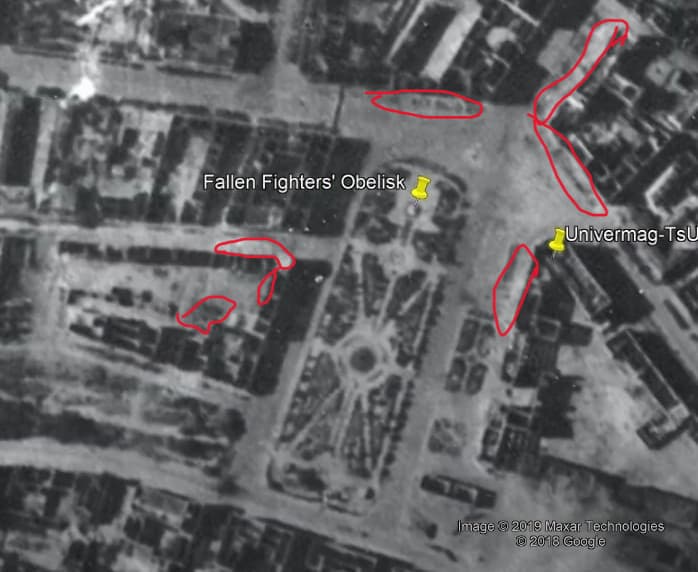Regarding the sewers, I think that if this variation of univermag 42 and univermag 43 existed we could have the sewers open like in red orchestra only in version 43 (as you see on the photo, the fallen fighter square was not attacked and its sewers still in good condition