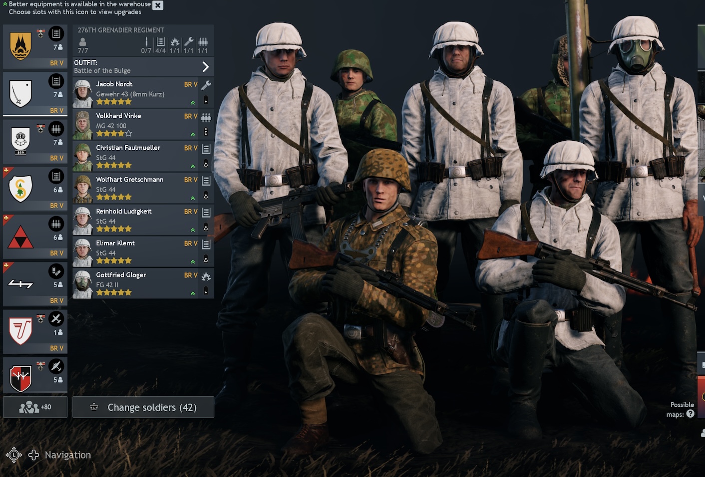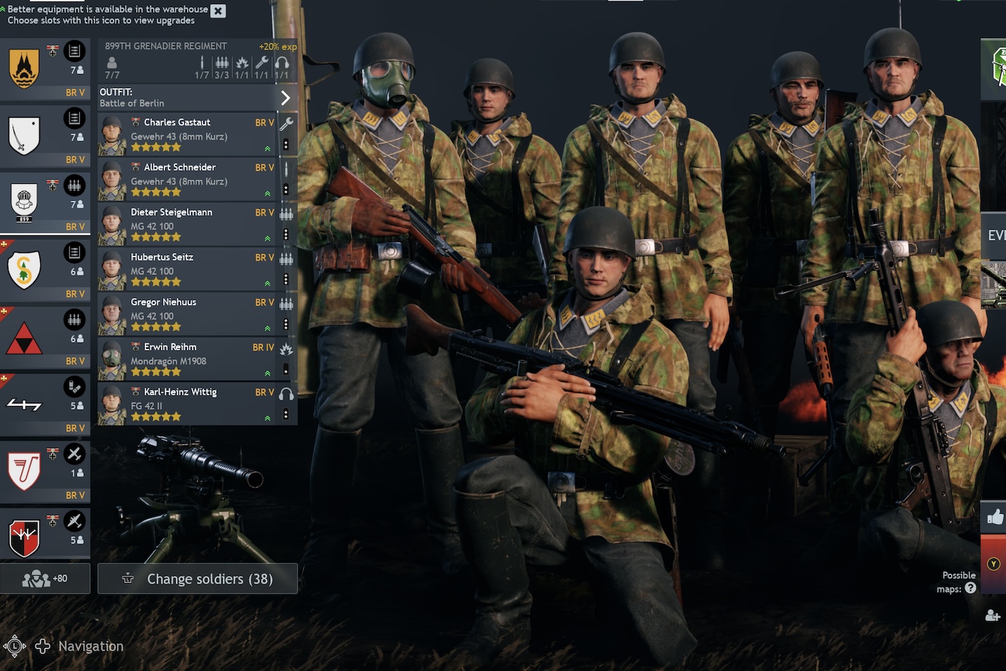 Have to make a mention and glaze the MG 13 75 rd though… its perfect when you just want a compact powerful squad… i used these in my lineup with rifleman but only chose to use them when i wanted more firepower… and its the same here you are sacrificing the higher rof of BRV mgs for a quick reload and steady fire rate one