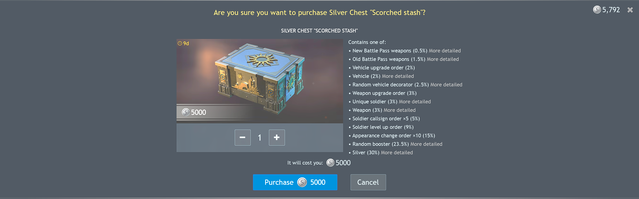 You can pick one reward from the chest as your ultimate prize, whether it’s a squad, weapon, or vehicle. After a certain number of pulls, you’re guaranteed to get it.