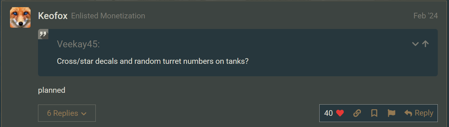 Every vehicle should receive a default turret number corresponding to the faction’s WW2 regulations in its correst font, if applicable (e.g. no “999”) – preferably randomized every match to avoid always seeing the same “Tiger 131”.