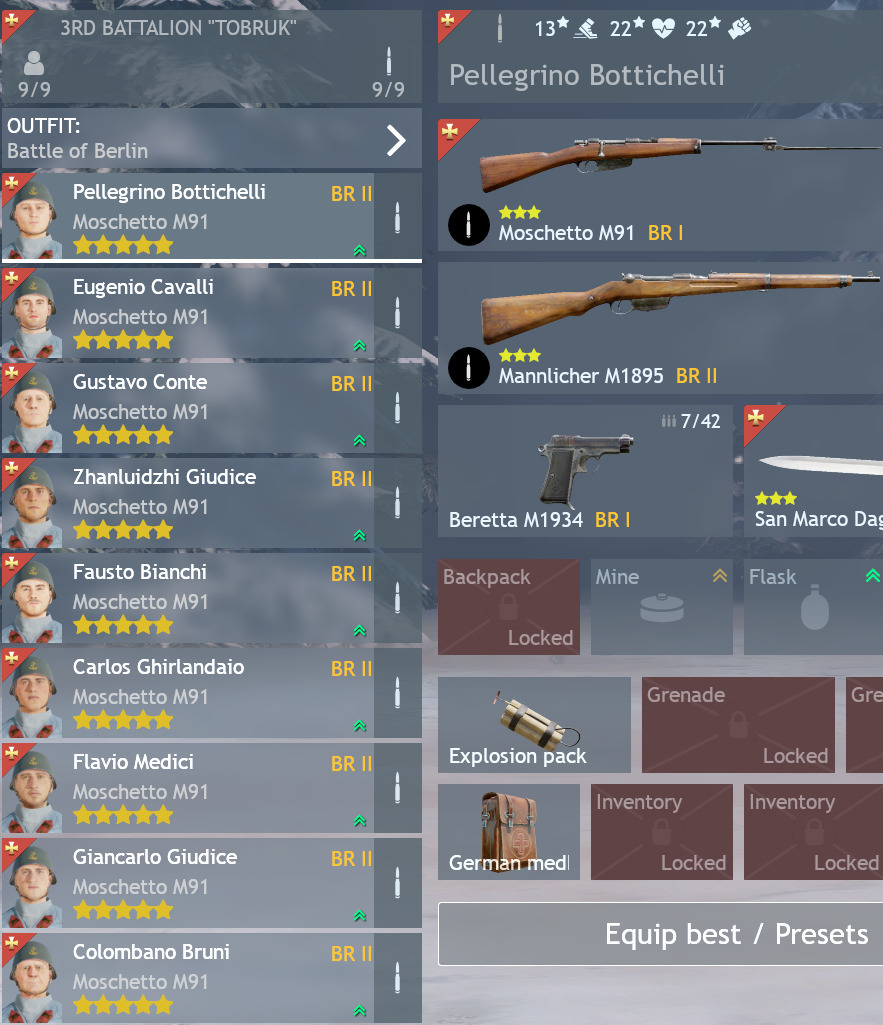 All nine man rifle squads should have the “OPTION” of changing one or two players to either an engineer, Radioman or AT assaulter dude. I own a few premium nine man squads, and it would be nice to have that option. By changing the premium squads to have this option, it does not change anything for those who bought the squads and want to leave them as a pure nine man rifle squad.