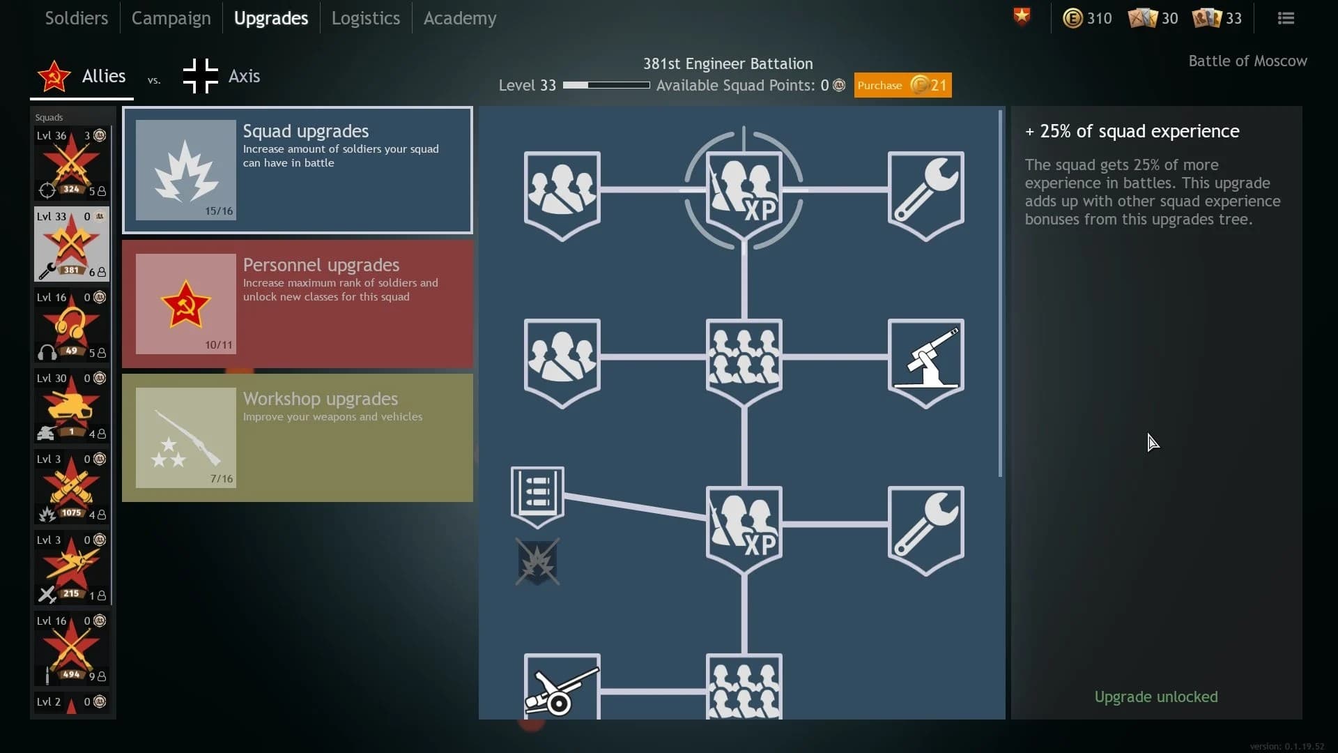 We upgrade our squads but often don’t know what these upgrades do. I think more info about that would be very nice to have.