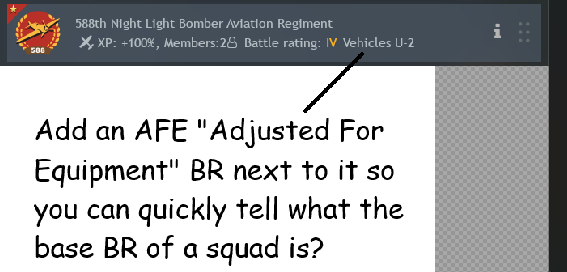 Even better, to also include a br breakdown list that directs you to wherever you click on it. Like say you open the list to find where a BR 5 equipment/weapon is in your line up, then just click it to go to the squad in question.