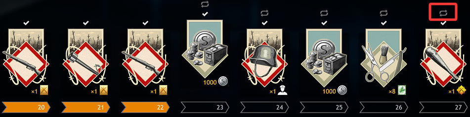 there are five repeating levels with Silver, Appearance orders, an M17 infantry helmet and a Trench club as a reward.