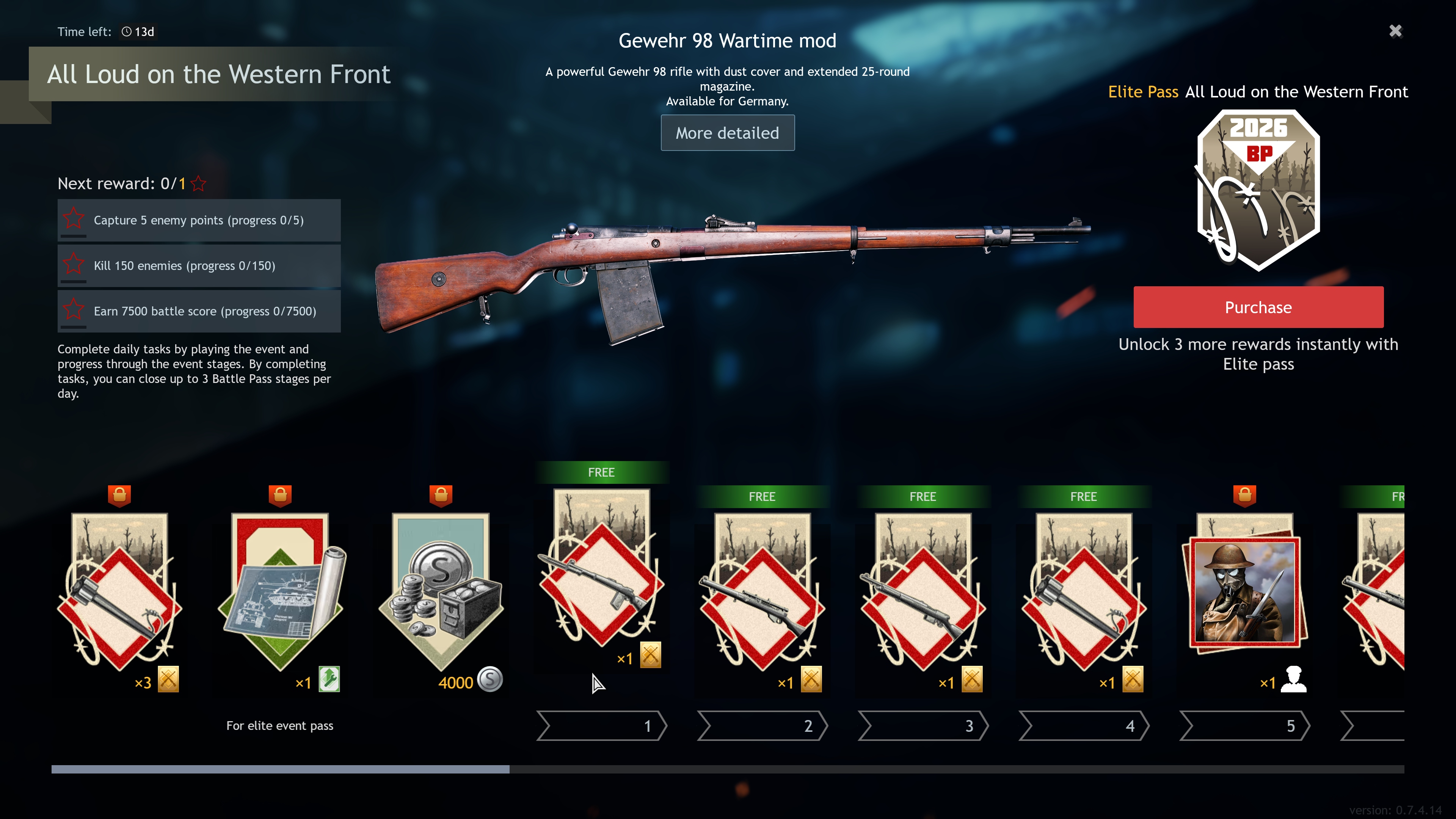 The announcement doesnt mention that the first free reward is this excellent Gewehr 98 Wartime mod