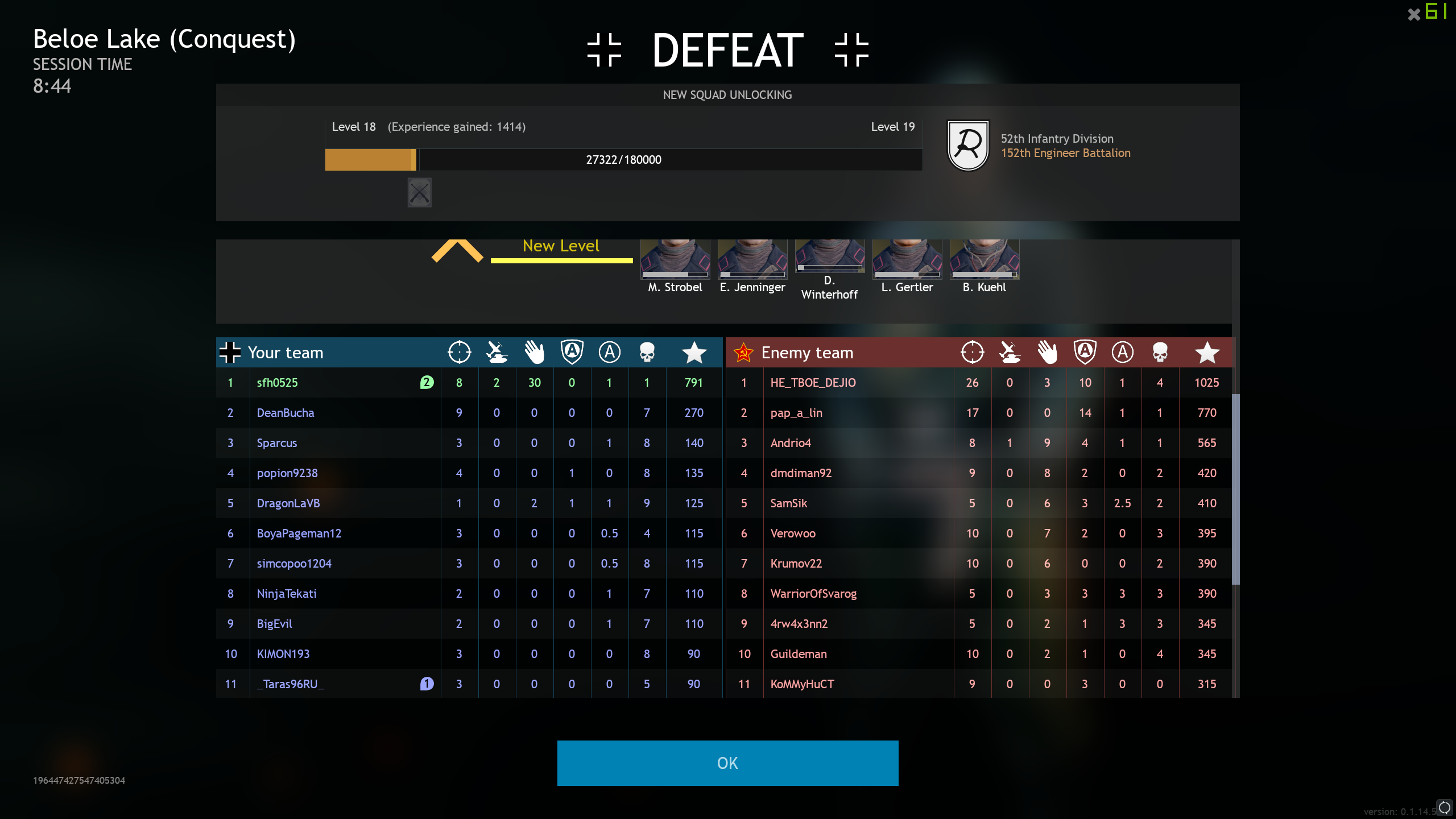 This is only about MATCH SCORES. Not soldier/squad/campaign exp.