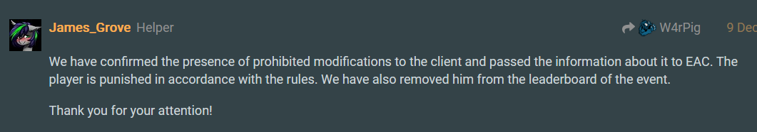 More, we need machine ban, and segnalation to the dude country autority that the guy was using illegal program