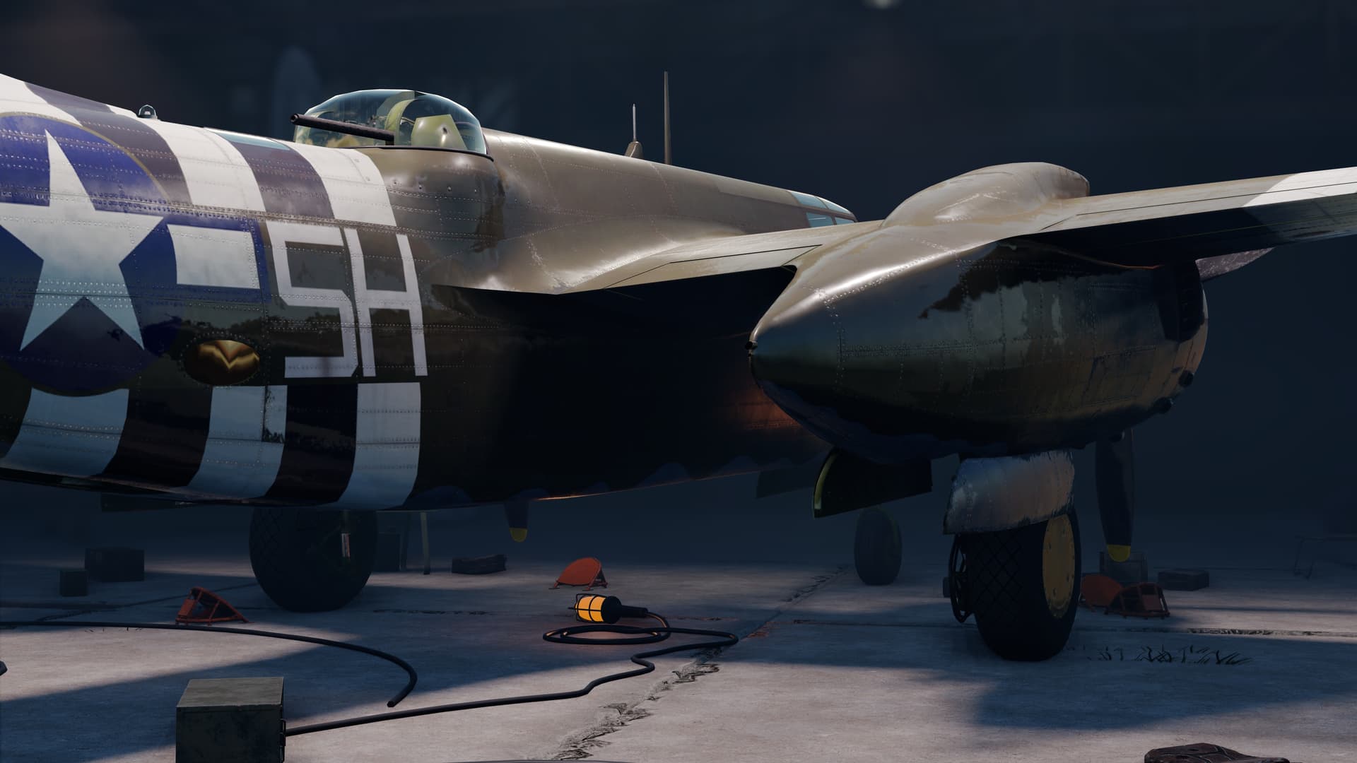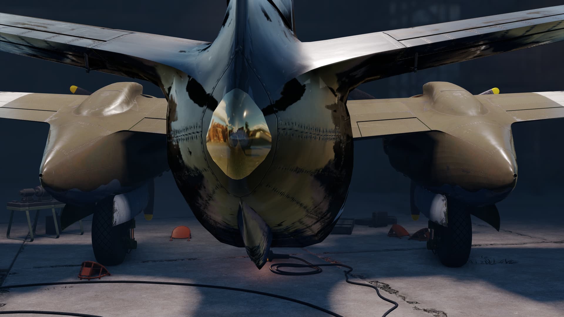 I think its just the reflection from the Warthunder hangars, where most of the vehicles were taken from.