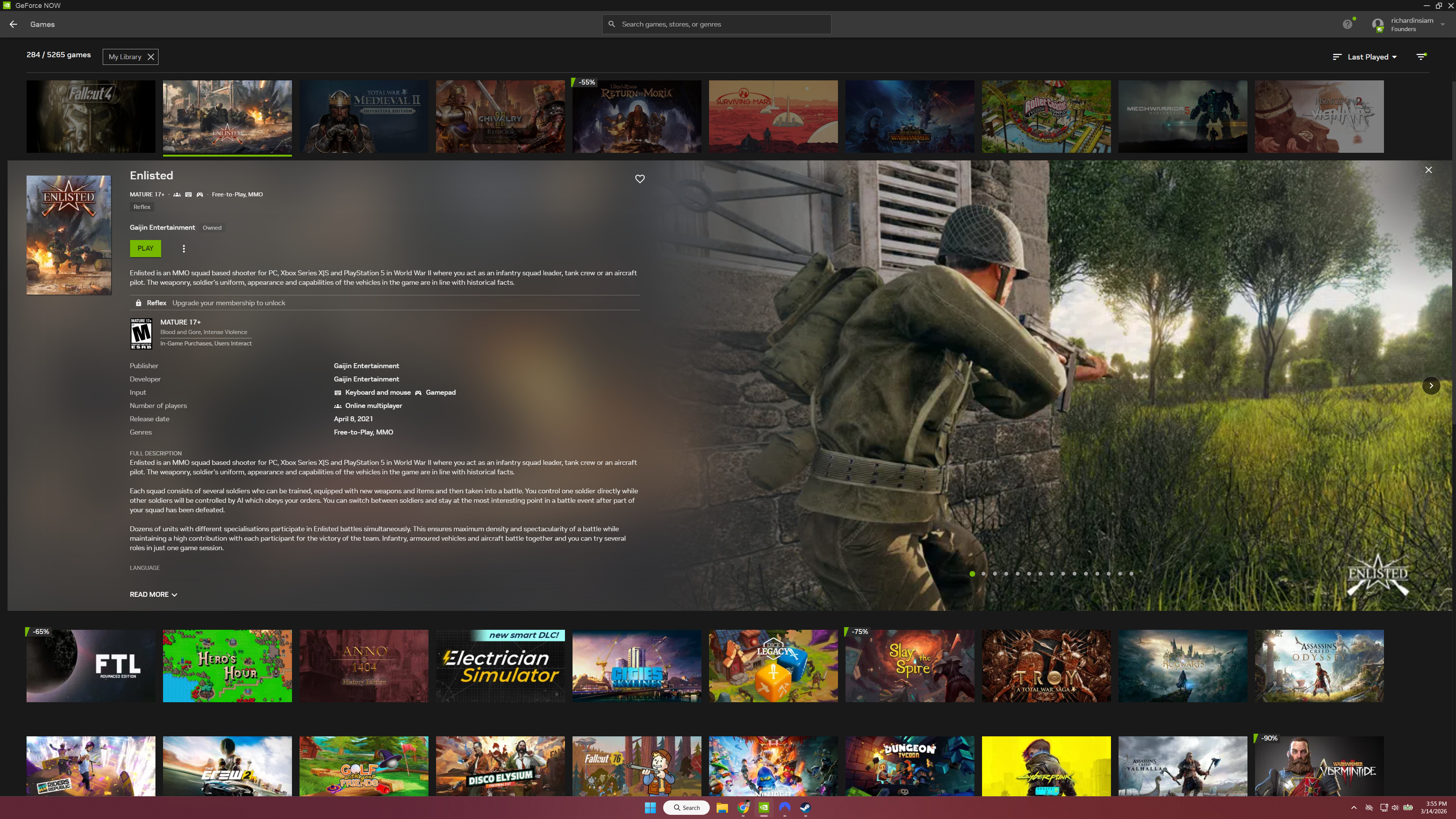 I’ve tried other games, and yes, I also got to Enlisted thanks to GeForce Now, since it was one of the few free games in the catalog back in 2023. I’ve also tried other free-to-play games, and they work well. War Thunder, World of Warships, and The First Descendant are some of the ones I’ve played there.