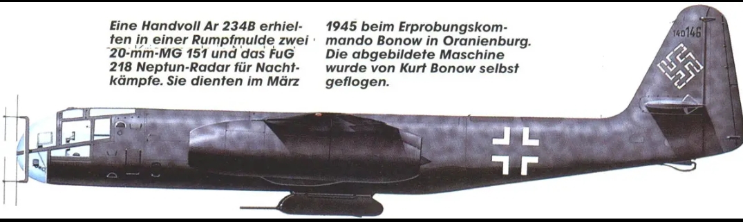 The Ar 234 B-2/B is a variant of the Ar 234 B Series. The difference is that it can carry 20mm MG 151 cannons in a gondola