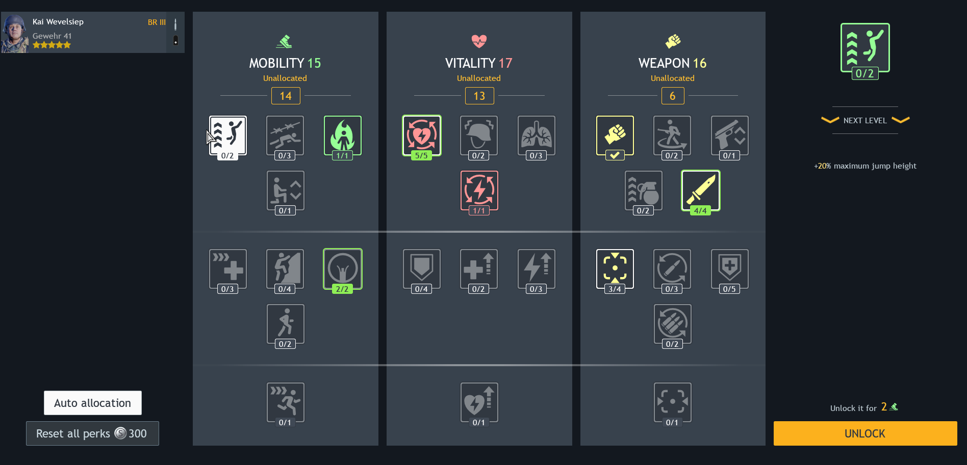 Am I dumb? I only just noticed today that there was an auto perk allocation button, and even for a veteran like me, it’s so much easier to equip perks. Some of the choices are a little interesting, but they’re fine. Personally, from this screenshot, I would’ve gone vitality or medkit revive speed instead, but honestly couldn’t be bothered to spend 10 minutes a soldier figuring out what would be best.