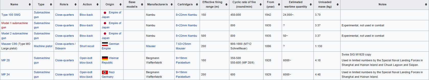 Actually, the Japanesse used quite a few types of SMGs, just not on a large scale. Possibly more than the US. The semi-autos would be the only issue.