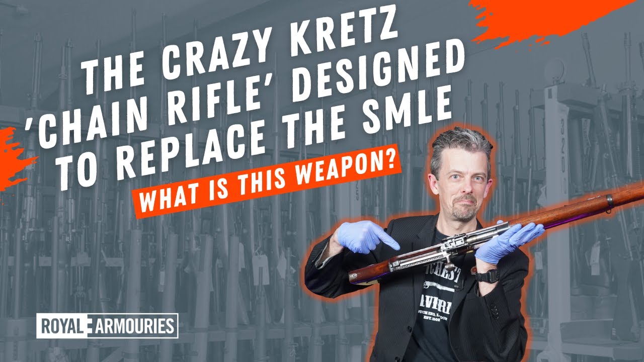 The Kretz used a coil-assisted blow-forward mechanism. The bolt was mounted on a chain on an internal cam, housing a big clock spring, or the coil. On the spring was yet another chain, mounted on a smaller clock spring, used to cycle the bolt. The muzzle blast would force the left chain forward, storing energy in the bigger clock spring. This would force a transfer arm to engage a dog on the smaller clock spring. The chain would then move back, pulling back the bolt. This would un-coil the smaller clock spring. The chain would be released by the dog on the smaller clock spring, forcing the bolt back into its original position.