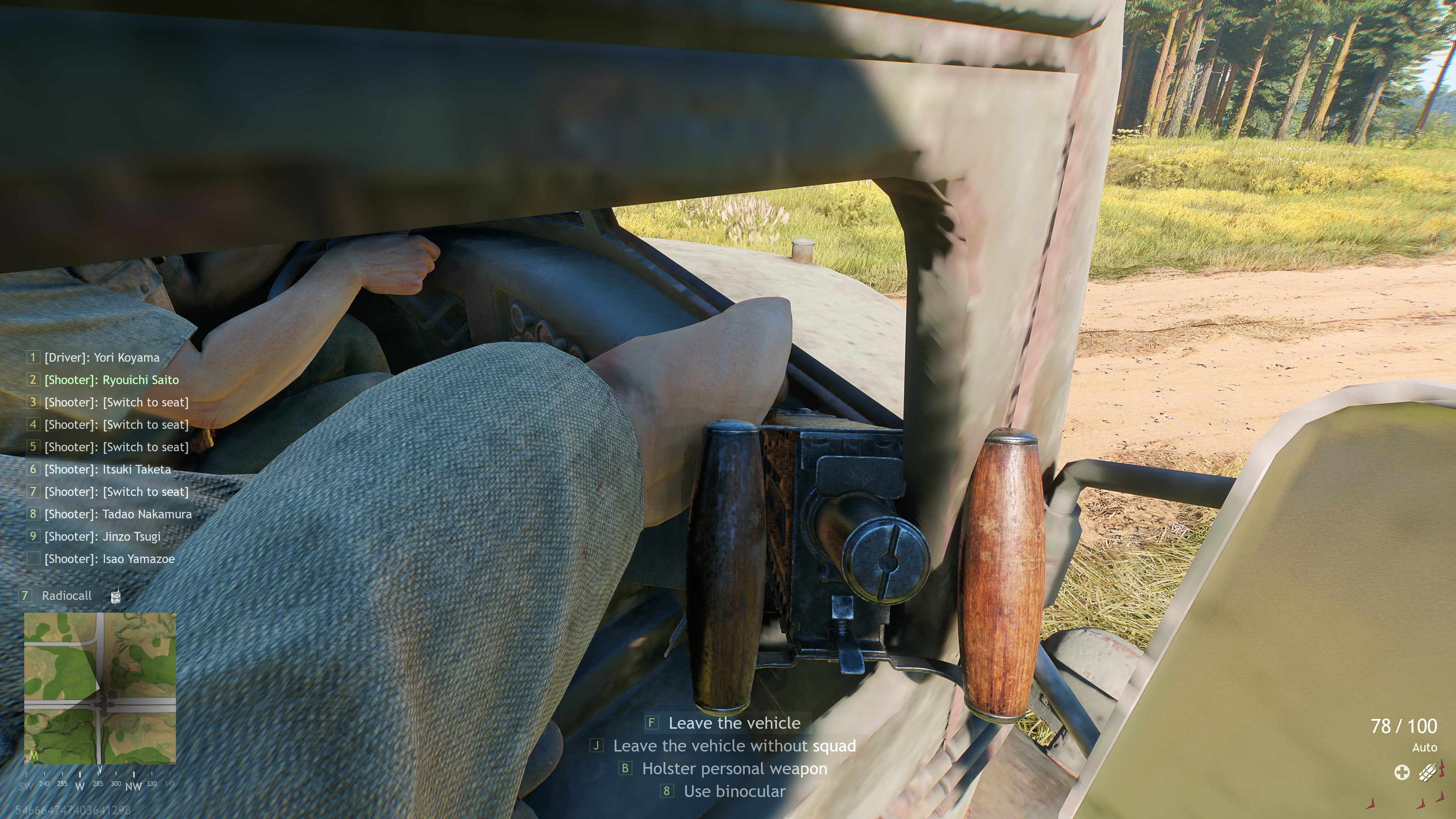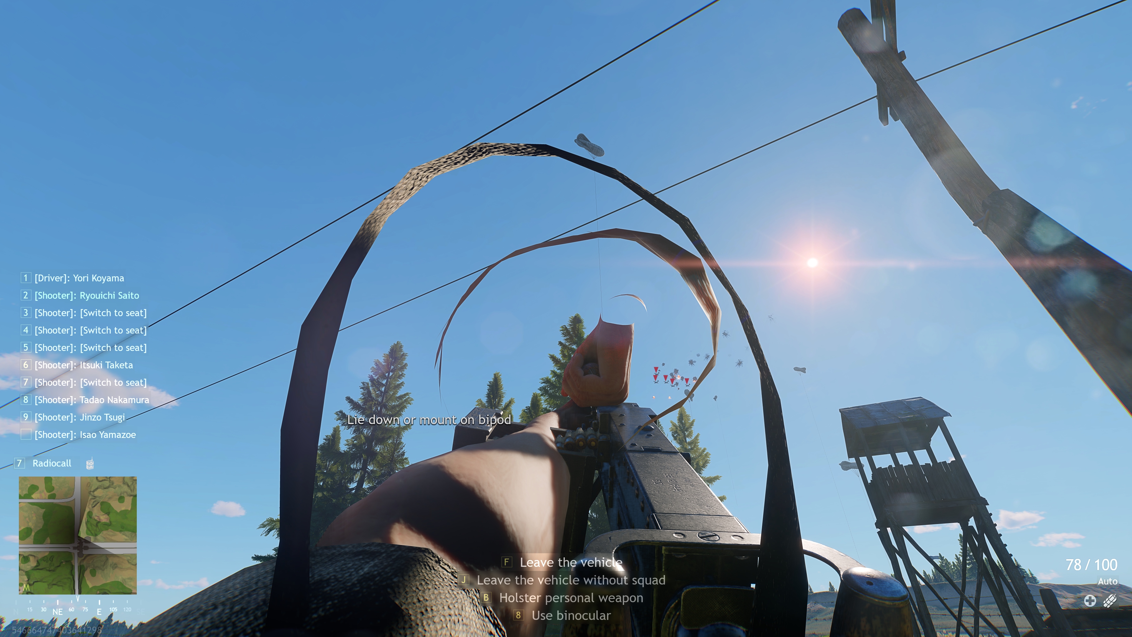 It can only fire from lying on the ground or mounted bipod, but as a vehicle passenger, you can select it (it cant fire and looks really bad)