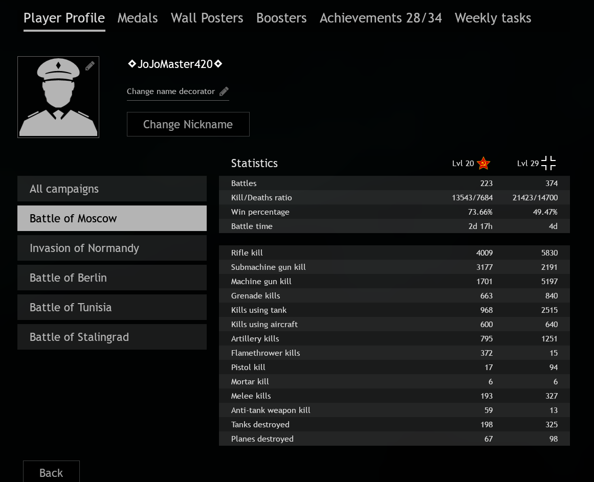 So that it’s fair, here’s mine. Though keep in mind Moscow axis was the first faction I ever played, so the winrate includes my noob days.