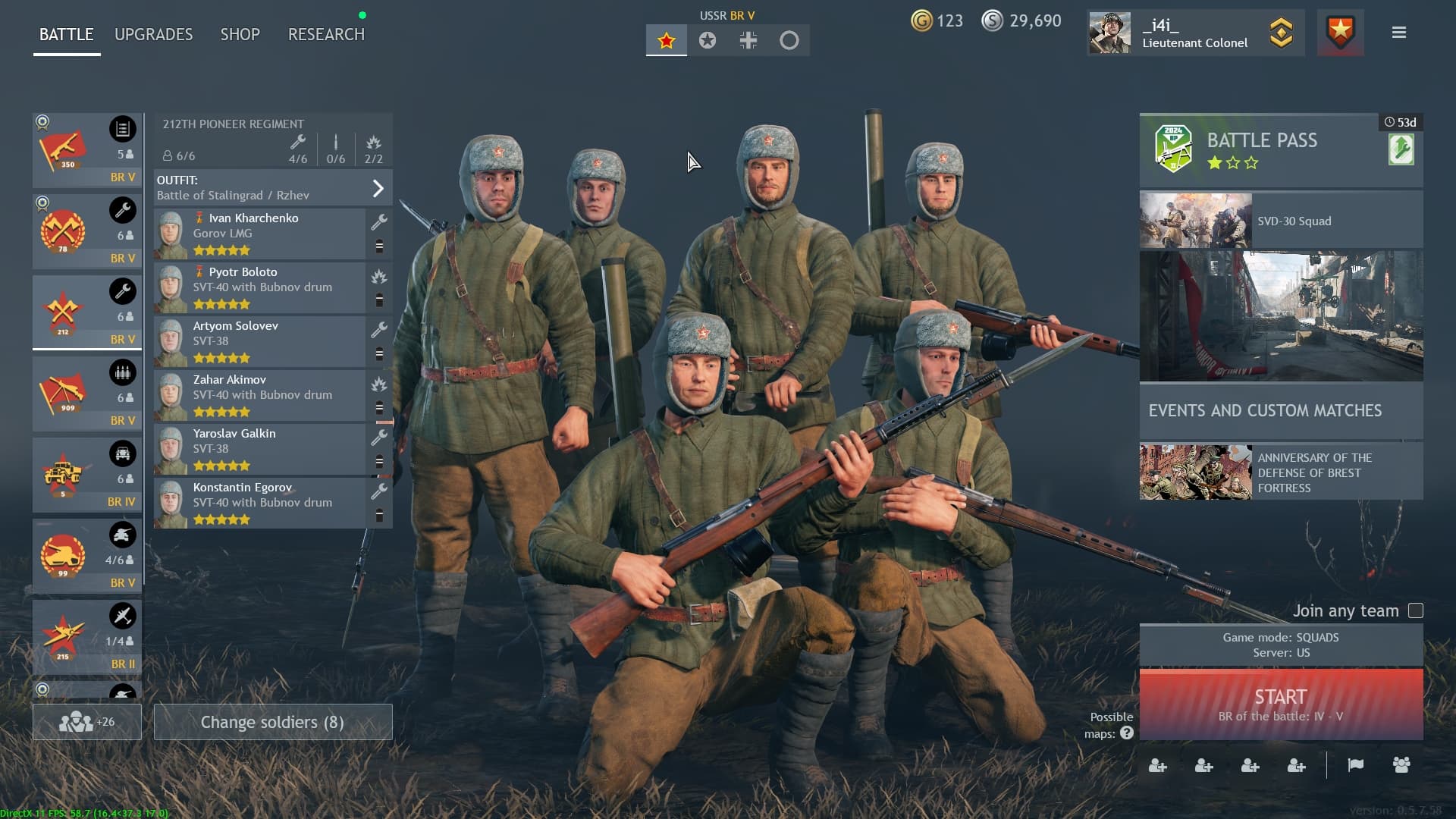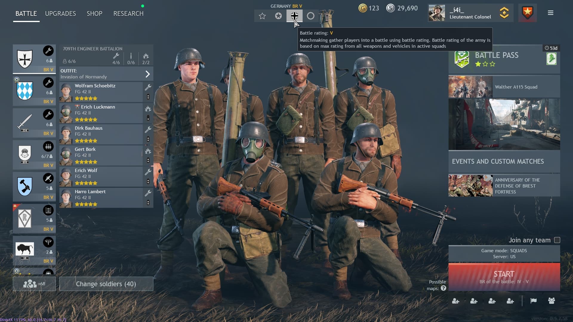 Post a picture of your main screen, so we can see your squad in their battle ratings, do you still have a battle rating V Items in your squad inventory.