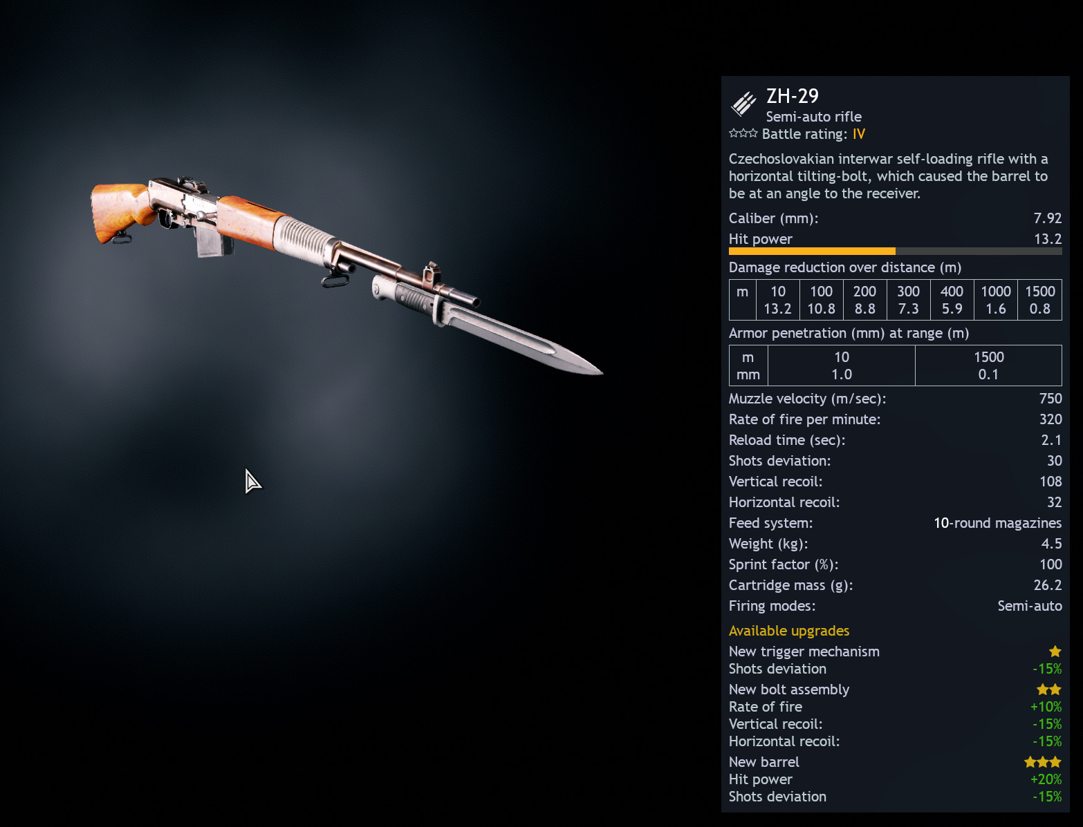 ZH-32 Rifle - 350RPM -----------------> 15.8 dmg [7.92mm Mauser at 750m/s]