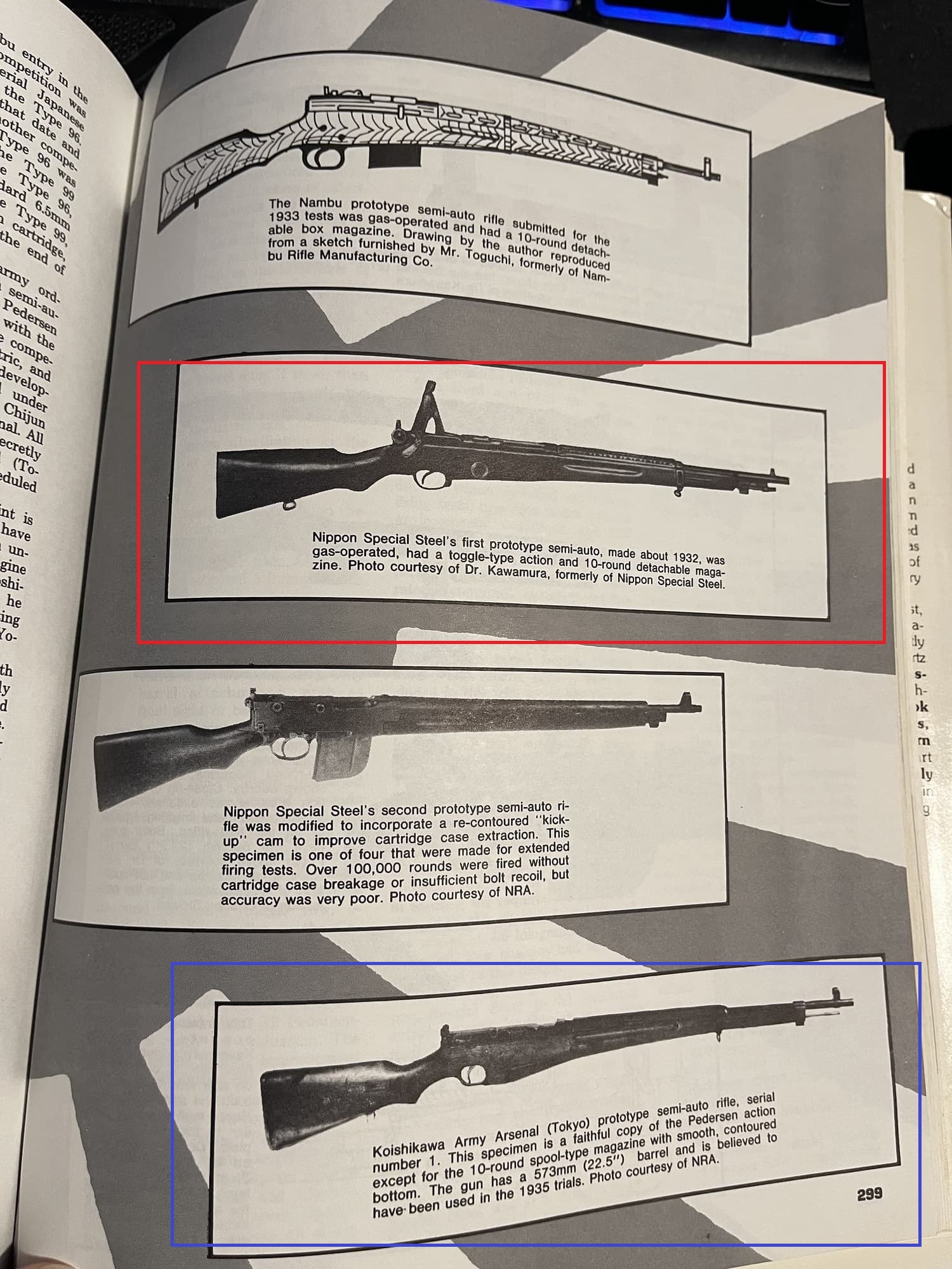 So I think I got it the early(Pedersen version) version of type Ko rifle that was recoilbarrelfixed 7.7 was actually loaded like a M1 Garand (however you put two strippers instead of one) while the other Rifle 6.5 is loaded like a Johnson Rifle like the Ko version we have in game.