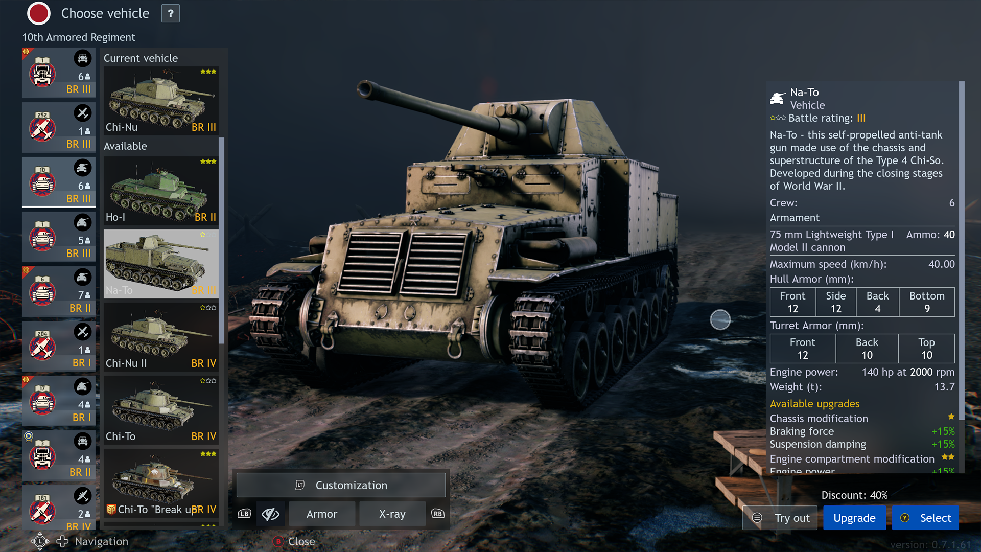 The Na-To is currently just a bot tank, because no real player will actually use it. Even at BR1 it would serve more as just a way to deal with Grants in an uptier, but at BR3 I have no problem calling it the most useless tank in the game.