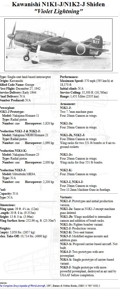 N1K2-J could only carry 2x 60kg bombs or 2x Rockets in real life