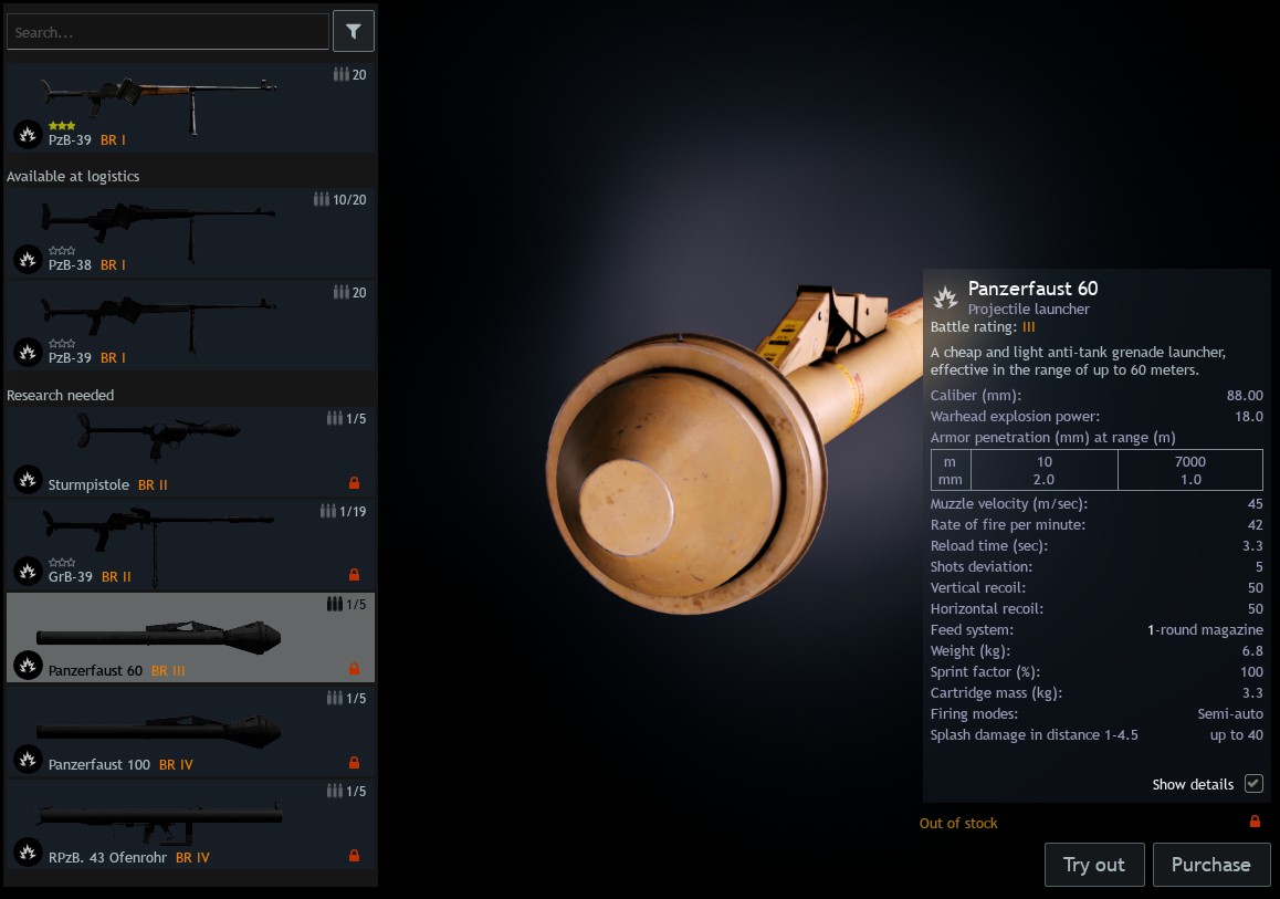 Germany’s tech tree only offer a Panzerfaus at BR3 and the RPzB. 43 Ofenrohr exactly as above at BR 4 and then a Panzefaus 100. There must some mistakes here with the whole thing. it doesn’t make sense.