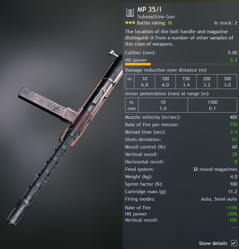 The Tier 2 MP-35 event reward weapon does not require upgrading, but the Tier 3 MP-35/1 does. Currently, German Tier 3 semi-automatic rifles and submachine guns are almost useless; novice players using Tier 3 weapons will only be able to passively take hits when facing Soviet assault troops with steel plate body armor.
