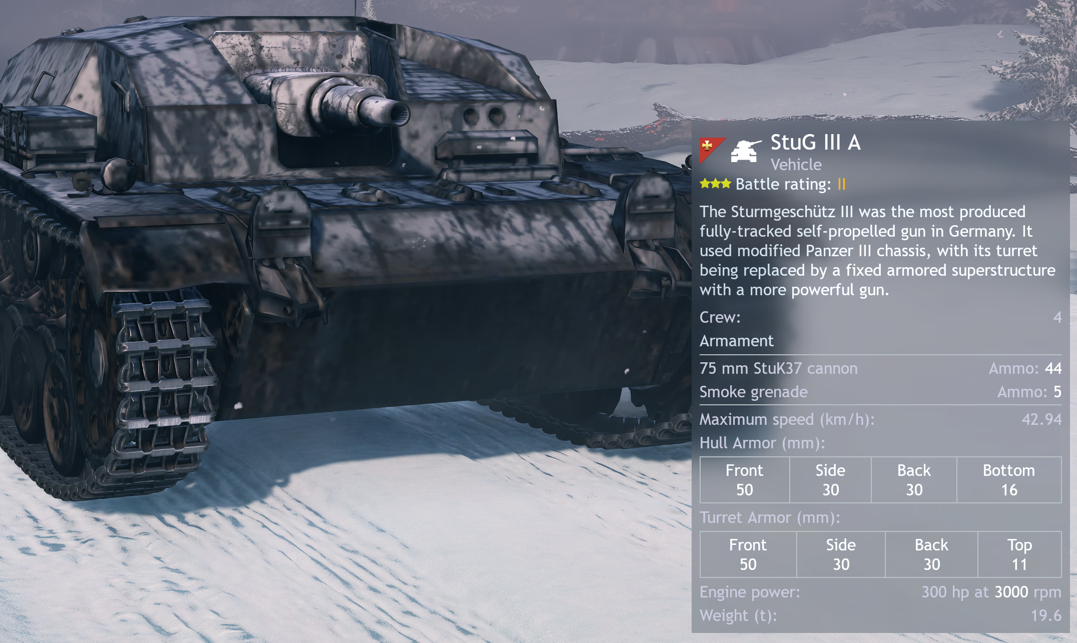This is very underwhelming ammo configuration considering that StuG A doesn’t have particularily good armor nor mobility. In fact, being casemate vehicle without turret AND lack of any coaxial MG only gives a disadvantage for ones using this vehicle when compared to something like Panzer 4 F1 at the same battle rating.