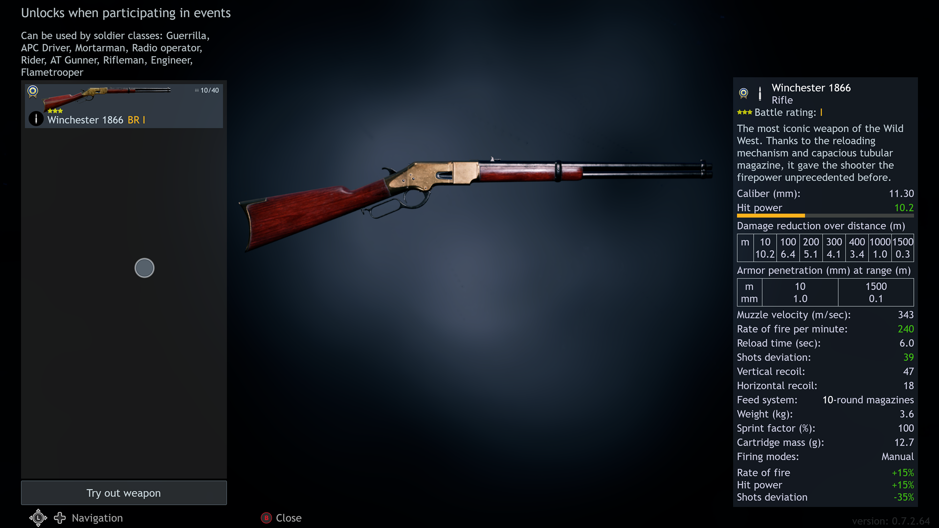 I’m glad you like it, I know there are weapons I use because I like the feel of em instead of their stats. Unfortunately the 1866 objectively is just useless, beyond “BR1 weapons should be bad” levels of garbage. Even at the ranges it’s most effective, a bolt action is still arguably better.