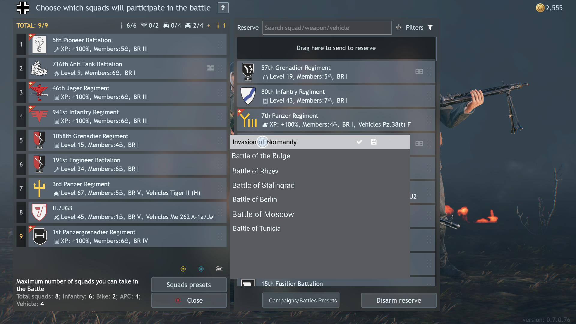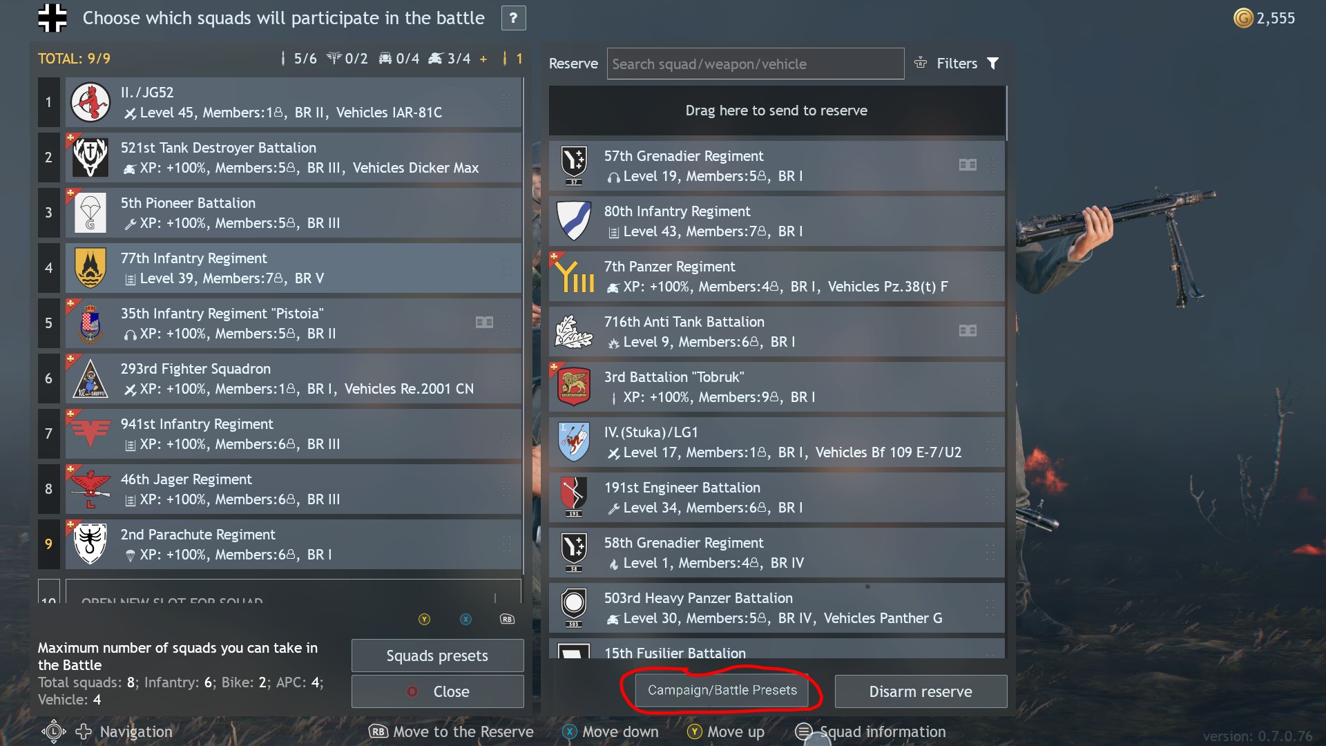 But if I play,for example, Battle of Tunisia and don’t have an preset? You will play with the squads that are currently selected before you start the match.