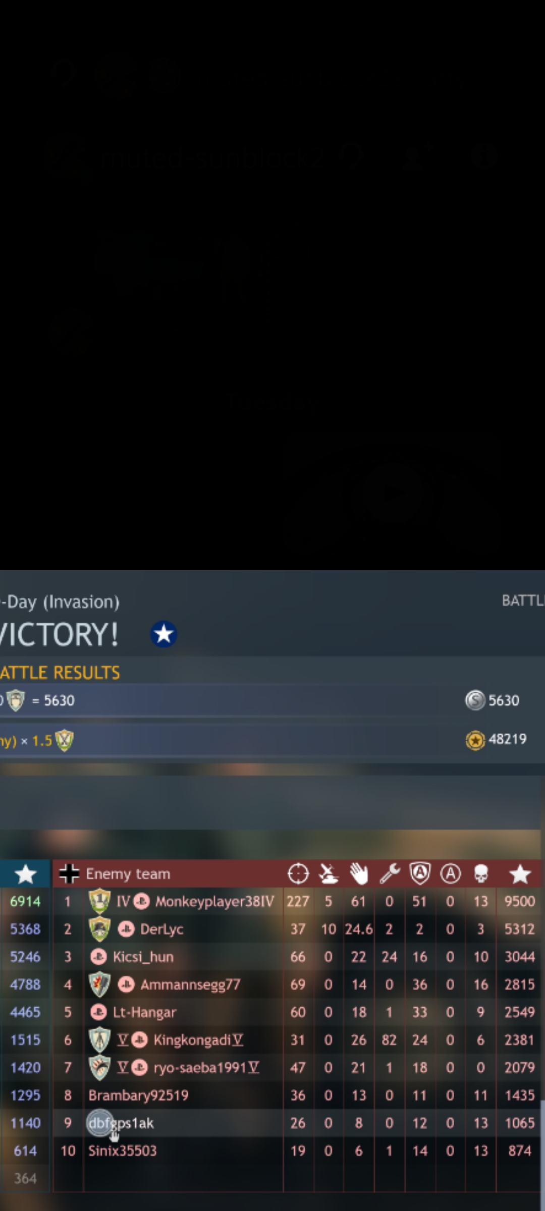 The just of it was unlimted airborn spawing. The airborn came in early to point and left earlier than usual. The thing is it was one after the other non stop all game. Im the player top left. It was dday map tier 5. Follow me and you can see what I am talking about. I never seen anything like tbat before. More than likely it was top dude on right. Even when I was flying I never seen the airborn drop from the planes. Please view this game for me and if you think also its a hack or something please report. Thank you.