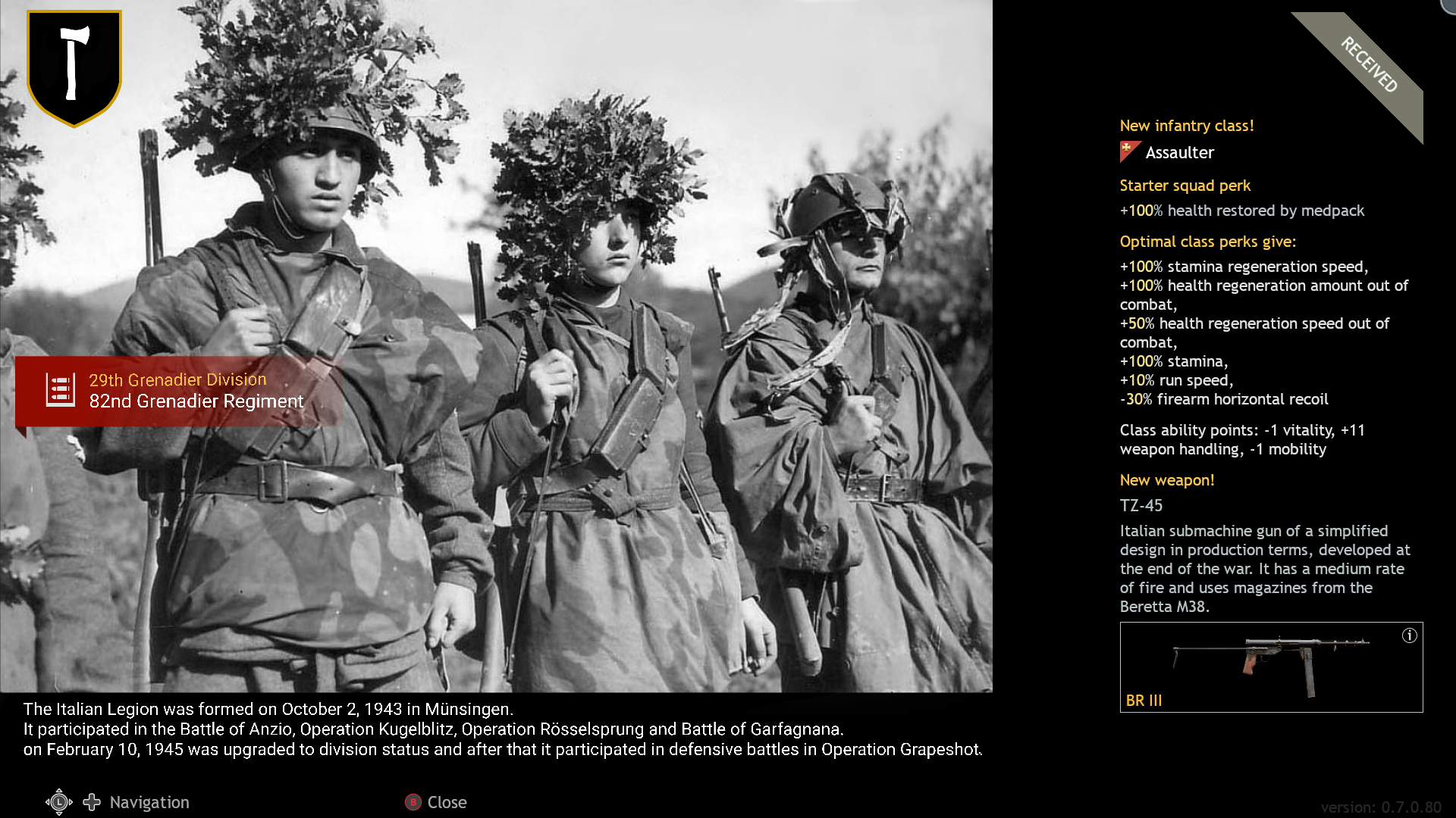 The squad will change the division insignia to some division of the weapon country origin or some division that volunteers fought