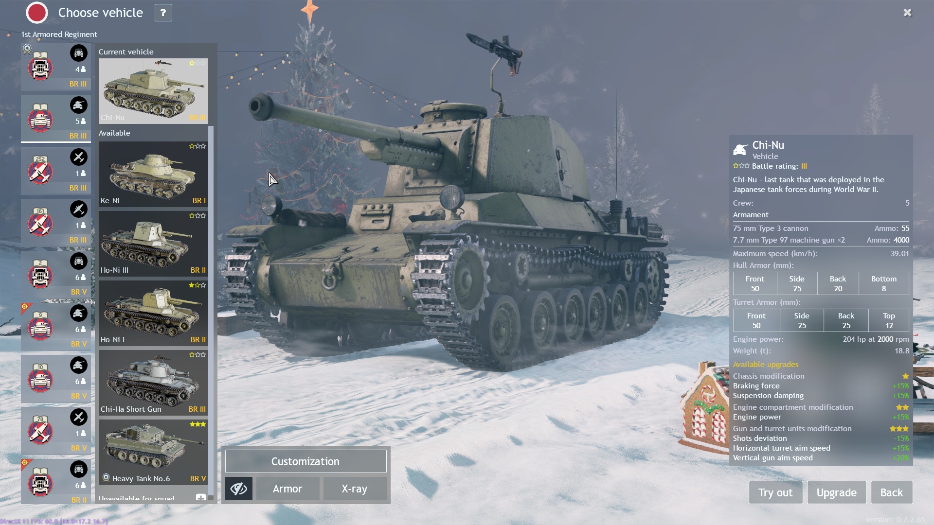 While the Japanese Chi-Nu II has been downtiered to BR 3, it can only be equipped in the 10th Armored Regiment (Tanker III) Squad, meaning you have to manually switch between it and the Ho-Ri production if you have presets for both BR 3 and BR 5.