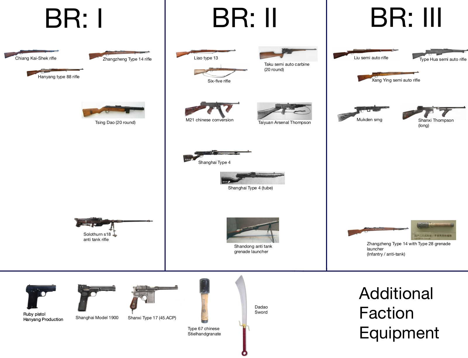 Although I would love for China to emerge as a faction, the equipment is mostly repetitive and difficult to develop with distinctive features.