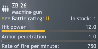Like many weapons in enlisted, the ZB-26 has the wrong rate of fire, in game the initial rate of fire is 750 and 830 with upgrade. but in real life, the max rate of fire is 600.