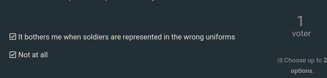 It irritates me that my Premium Italian Assaulter squad can be fully decked out in German uniforms. It shouldn’t be hard for devs to limit squads to specific uniforms. This happens a bit on all Nations with the exception of most event squads that have outfits that stay true to thier nation. I understand that some squads had soldiers recruited from other nations and were put into that particular military uniform as a detachment, but shouldn’t be the case for all.