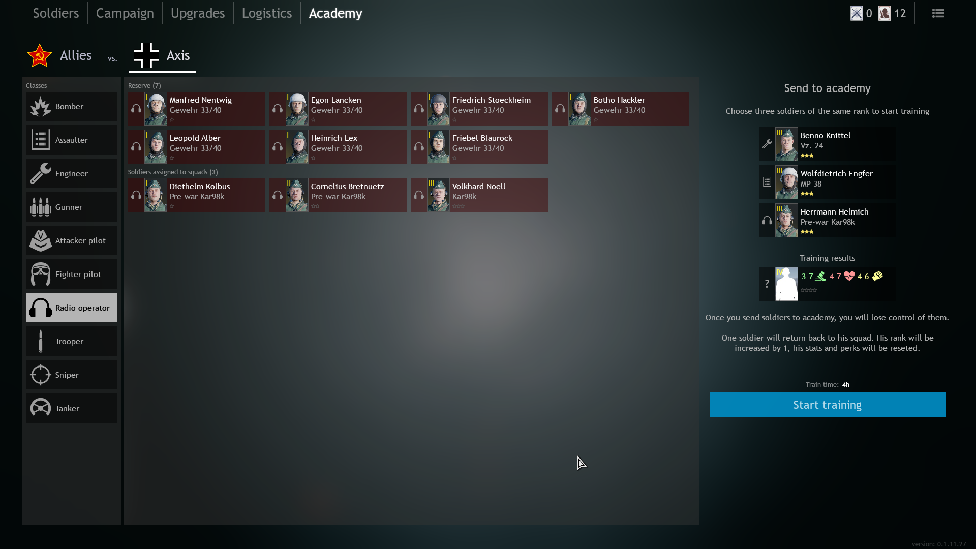 If so, what happens when you start training with different classes and sets one by one as in this screenshot? And how do these systems work? For example, a system in which soldiers sent to the academy automatically enter the inventory.