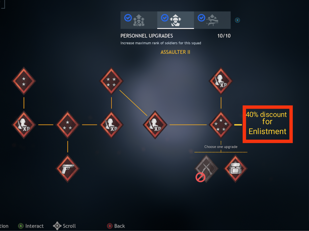 Enlisting higher level soilders can get expensive pretty quickly, so I’d like to suggest a way for players to earn a discount.