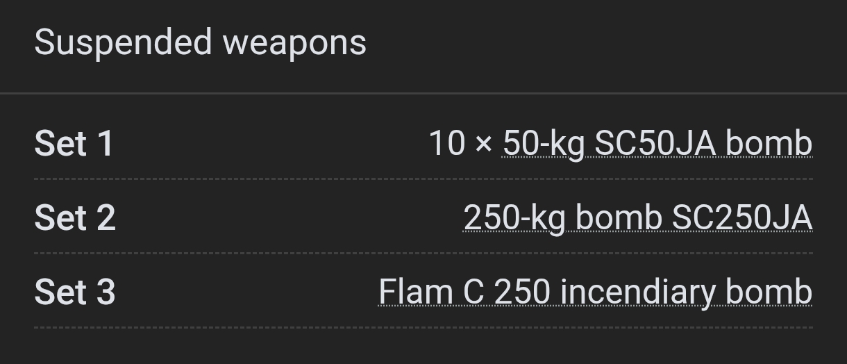 3 Ć 7.92 mm MG 17 machine guns in the nose