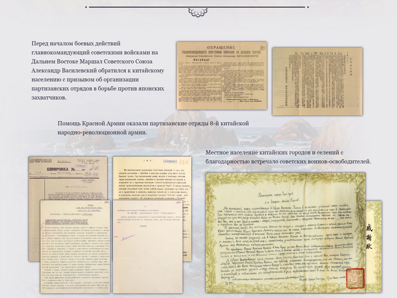 Before the start of hostilities, the Commander-in-Chief of the Soviet forces in the Far East, Marshal of the Soviet Union Alexander Vasilevsky, appealed to the Chinese population with a call to organize partisan units in the struggle against the Japanese invaders.