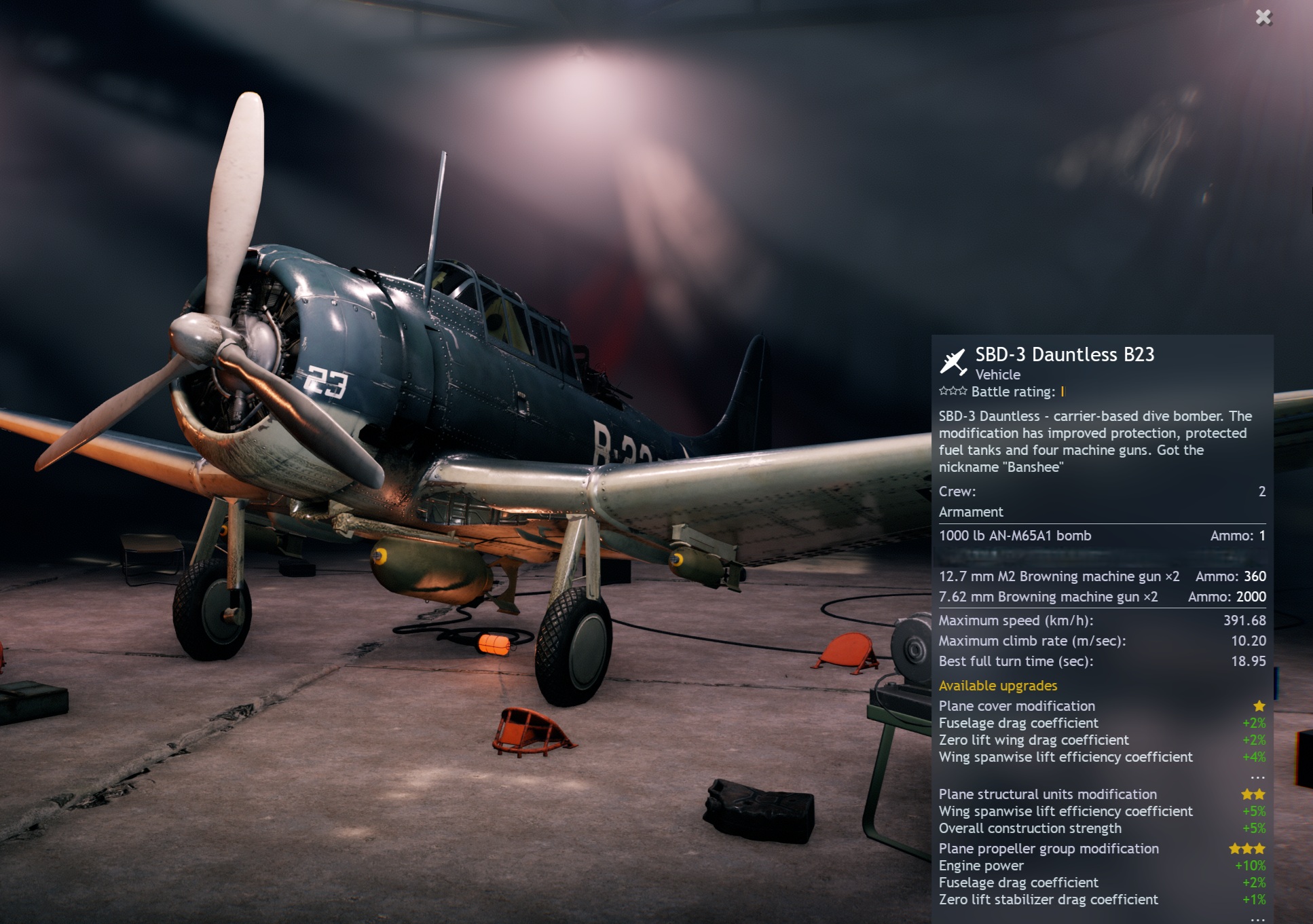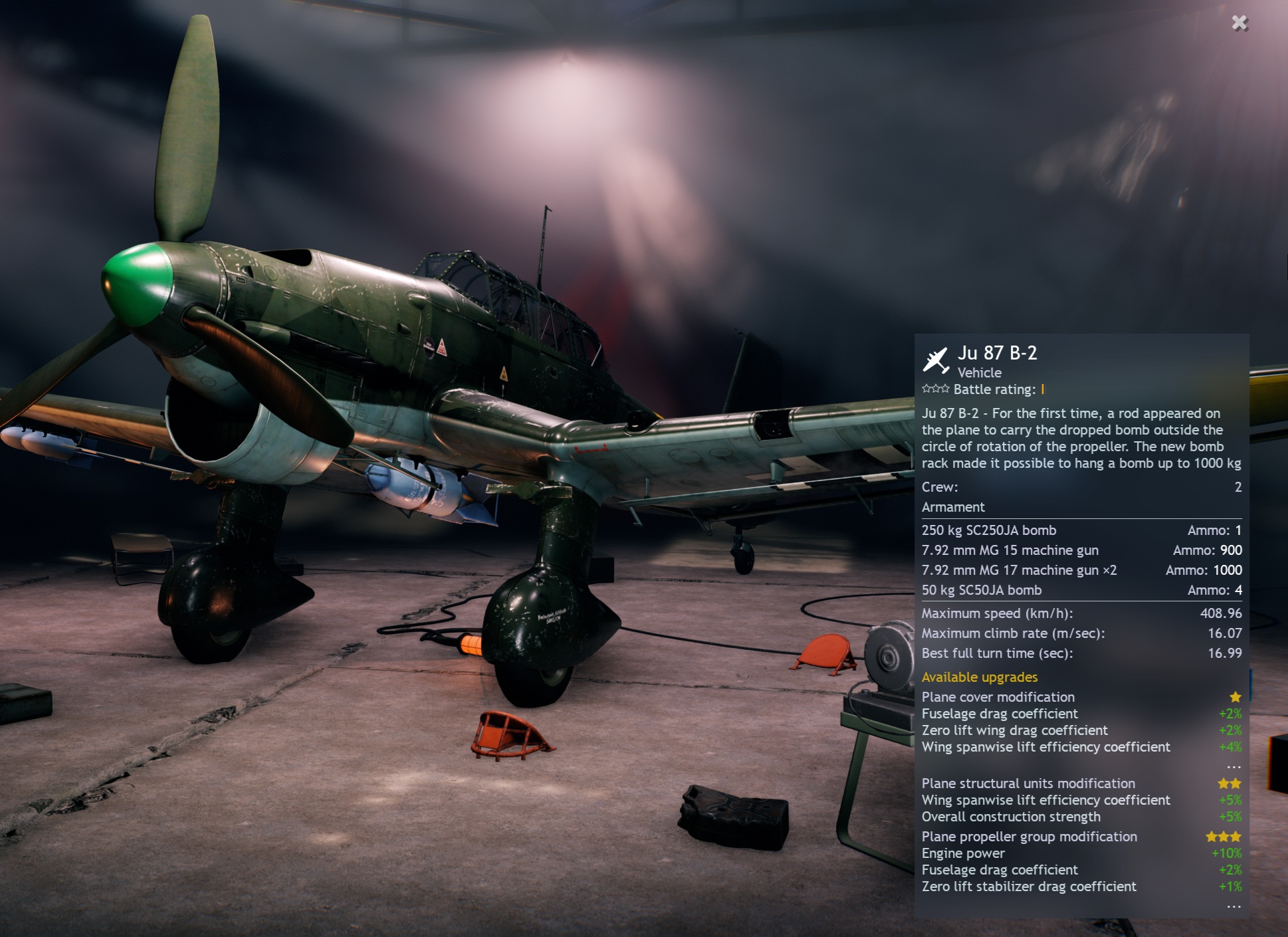 Very iconic WW 2 plane sadly there is too many good options for BR II and at BR I with just 1 big bomb will be very cool BR I ground attacker that will see a lot of play making it regain its iconic status.