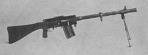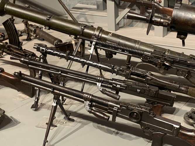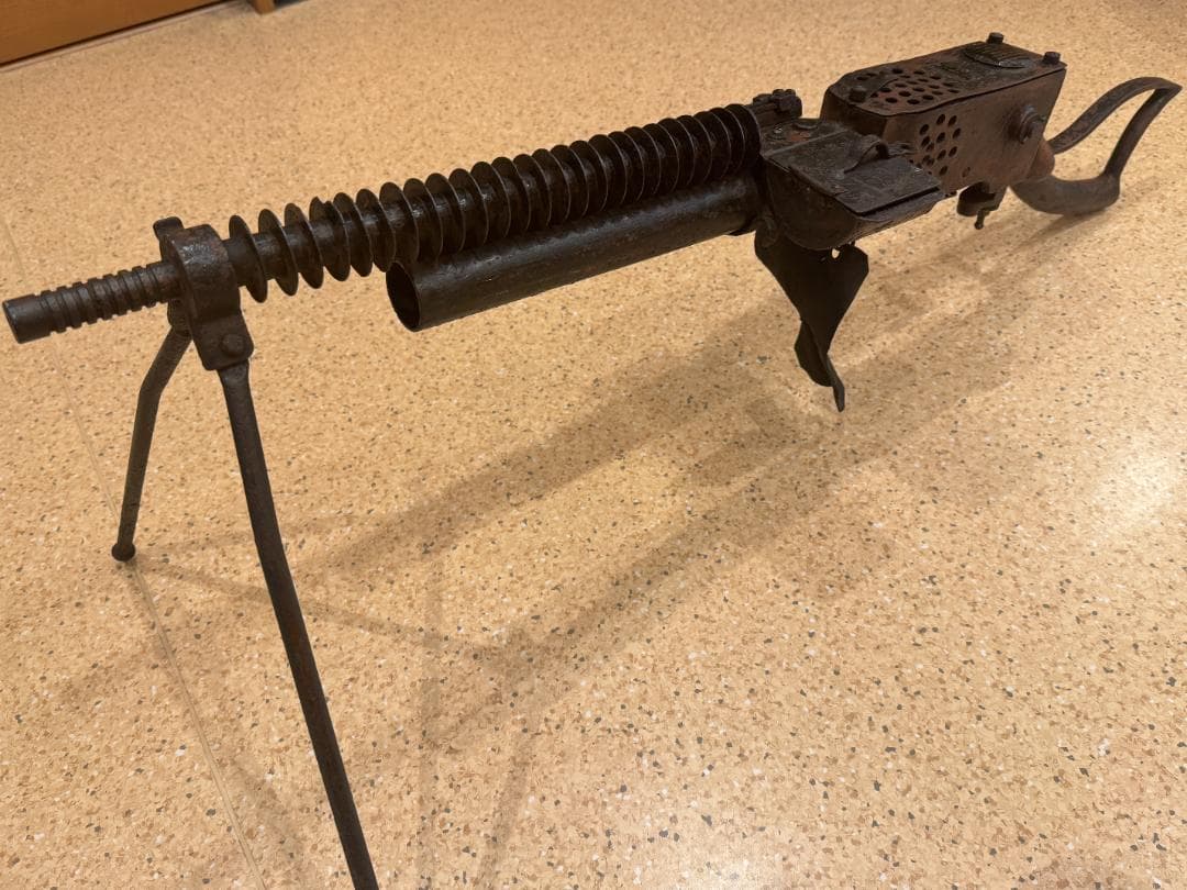 It seems pretty obvious to me that this is an AI-generated image. For starters, the rear and front sights are at different heights, making it impossible to aim the weapon. The magazine is very strange and is located directly under the barrel rather than where the bolt should be. The receiver looks like it’s made of aluminum, which was hardly ever used in WWII small arms. There is a barrel visible on the outside, yet it’s missing inside the cooling shroud. And so on…