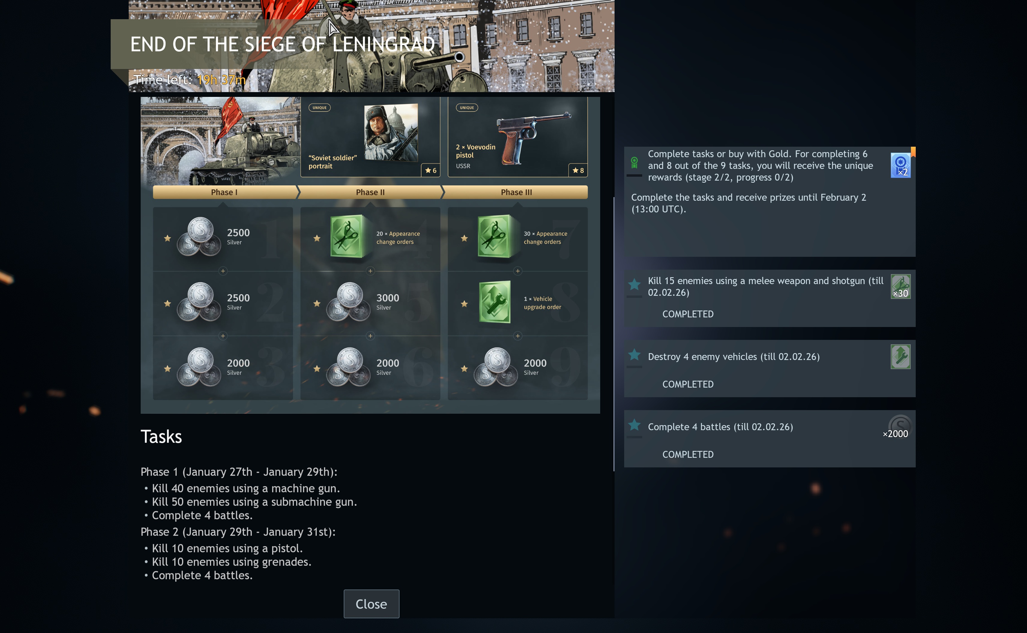 I have finished all the phases. But havent got pistols. Still it shows stage 2/2 progress 0/2. And the event didnt update today. Is there after phase 3 something that we have to do. Terms are not clear.