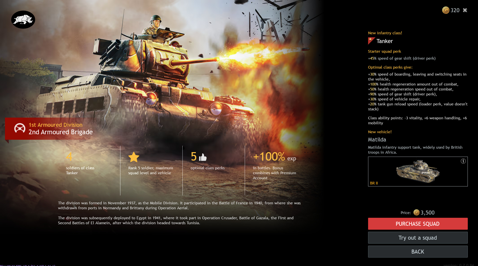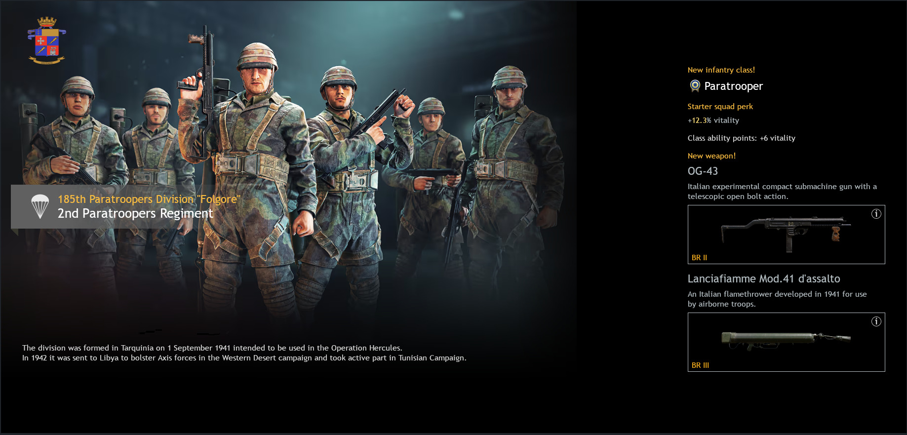- Some previously removed premium/thematic squads (such as the 8th Bersaglieri Regiment, 1st Company Giaguaro, 2/24th Battalion (UK), 2/4th Commando Squadron (UK), etc.) could have been listed to the market during the event.