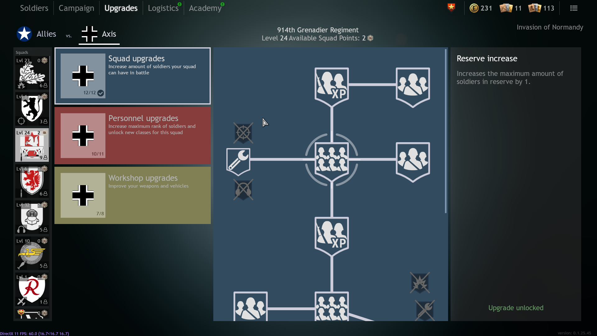 level 16,17 moscow and level 19.23normandy and all tank starter squads are leveled up to max